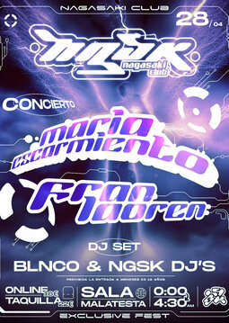 En esta ocasión Nagasaki Club se traslada a Santiago de Compostela para ofrecer un evento único. María Escarmiento presentando su último trabajo "Cosas de brujas" y Fran Laoren "Mientras duermes" harán de la Sala Malatesta un sitio mágico.