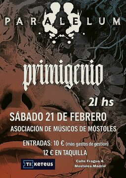 Paralelum, Los hijos mestizos del metal, el hardcore y el rock, arrancan gira con esta fecha para presentar sus nuevas canciones. No lo harán solos, les acompañaran Primigenio, banda que ejecuta un sludge pantanoso y pesado que hará las delicias de los seguidores de los sonidos más densos y que se estrena en directo.
