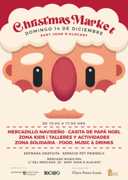 El próximo domingo 14 de diciembre celebramos el Christmas Market de Sant Joan d’Alacant, en los alrededores del Mercado Municipal.