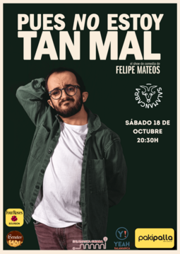 SalamanCabra comedy tiene el placer de traer al PakiPalla Pues no estoy tan mal , el segundo monólogo en solitario de Felipe Mateos, un cómico que no deja indiferente. Con un estilo directo, ácido y sin pelos en la lengua, Felipe se ríe de todo lo que incomoda, y precisamente ahí es donde conecta con el público.