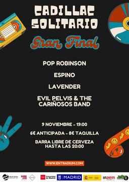 Concierto de Pop Robinson, Espino, Lavender y Evil Pelvis & The Cariñosos Band en Madrid. Final de la edición de 2025 del concurso de Cadillac Solitario.