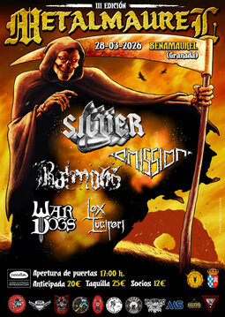 Y como cabeza de cartel nos enorgullece contar con SILVER Metal Band en su vuelta a los escenarios con su nueva formación. El legendario y carismático ex-cantante de Muro desgranará míticas canciones clásicas de la célebre formación madrileña, así como de Silver Fist, Venganza y otras muchas sorpresas. Contando los días para poder ver y disfrutar de auténticos himnos del Heavy Metal nacional con los que muchos hemos crecido. Estad seguros que será una noche apoteósica.