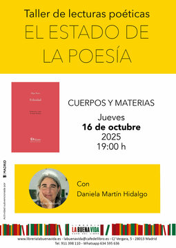 Buy tickets for El estado de la poesía. Taller de lecturas poéticas. 'Cuerpos y materias', in Madrid | ticketrona, by Librería La Buena Vida - Café del Libro