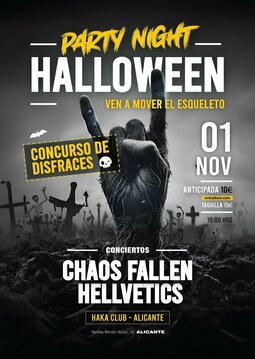 Te esperan los conciertazos de CHAOS FALLEN y HELLVETICS, y un terrorífico CONCURSO DE DISFRACES con premios.