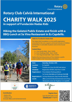 Join us for one of Mallorca’s most beloved fundraising traditions! For over 10 years, the Rotary Club Calvià International Charity Walk has brought together locals, visitors, and families to support a great cause.