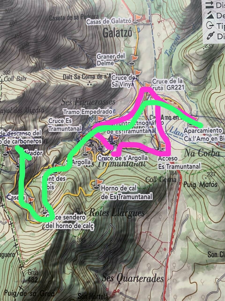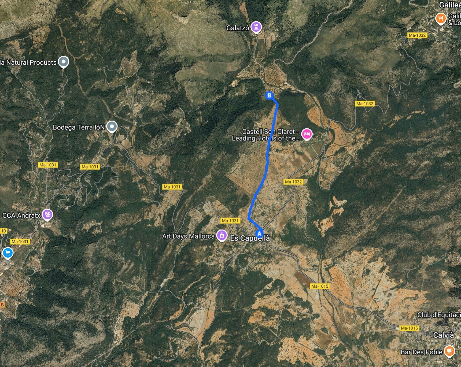 - Senderismo familiar (1) y Senderismo de desafío (2): Aparcamiento público Finca Galatzó, Es Capdellà