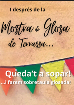 Un cop finalitzada la Mostra de Glosa, si tens ganes de continuar amb la celebració vine a sopar amb Terrassa Glosa i amb tots els glosadors/es i músics de la Mostra.