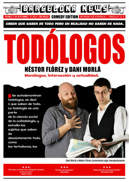 Néstor Flórez y Dani Morlá presentan Todólogos, ¡porque creen que saben de todo, pero en realidad no saben de nada!, un show con monólogos, diálogos, improvisación... además repasaremos la actualidad de una forma mucho más divertida que didáctica.