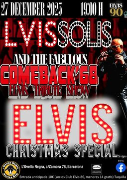 Comeback'68 Elvis Tribute celebra la Navidad y el 90 aniversario del nacimiento de Elvis con un nuevo ELVIS CHRISTMAS SPECIAL, despues del exito del año pasado, y de nuevo en un local fantástico como es L'Ovella Negra Marina, en Poblenou. Con los mejores temas navideños de Elvis y un montón de Rock'n Roll.