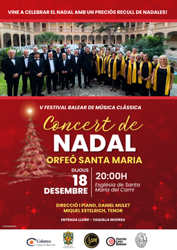 L’Orfeó Santa Maria us convida a viure l’esperit del Nadal amb un concert ple d’emoció, bellesa i recolliment. Com sempre, sota la direcció i piano del mestre Daniel Mulet, i amb la participació destacada del tenor mallorquí Miquel Estelrich, hem preparat un programa que combina la tradició amb la sensibilitat musical que caracteritza les nostres celebracions nadalenques.
