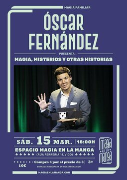 Una magia que no podrás olvidar. De la mano del ilusionista Óscar Fernández será posible entrar en un mundo donde la magia y el humor no dejarán indiferente a nadie. Números clásicos reinventados para llegar a nuevos imposibles y sensaciones únicas para toda la familia. El misterio no entiende de edades, y tanto niños como adultos vivirán por igual el misterio de la magia y descubrirán que puede ser más real de lo que pensamos.