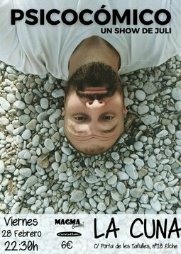 El próximo 28 de febrero en La Cuna de Elche tendremos a Juli con su show "PSICOCÓMICO". Un show de comedia, terapia, anécdotas... con un único fin, HACERTE REÍR.