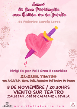 Don Perlimplín que no conocía el amor, es convencido por su criada Marcolfa para que se case con la joven Belisa. Ella accede tras ser obligada por su madre que está interesada en su dinero. Perlimplín acaba amando a Belisa, ella no siente nada por él y ama a más hombres. Marcolfa cuida de Perlimplín mientras observa como inmola su corazón... Una versión de la “Aleluya Erótica” de Lorca sobre las turbulentas relaciones humanas que mezclan la dependencia, el enamoramiento, la juventud, la madurez, el erotismo, la subida al cielo... Es un viaje iniciático al desamor y un estético estado interno donde los personajes aman y desgarran al mismo tiempo. Es una farsa tierna pero desgarrada tragicomedia, en la que contrasta constantemente lo grotesco con lo lírico.