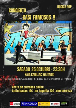 Erosi sarrerak Casi Famosos - Tributo Pop-Rock, Madrid | ticketrona, Cadillac Solitario-ren eskutik