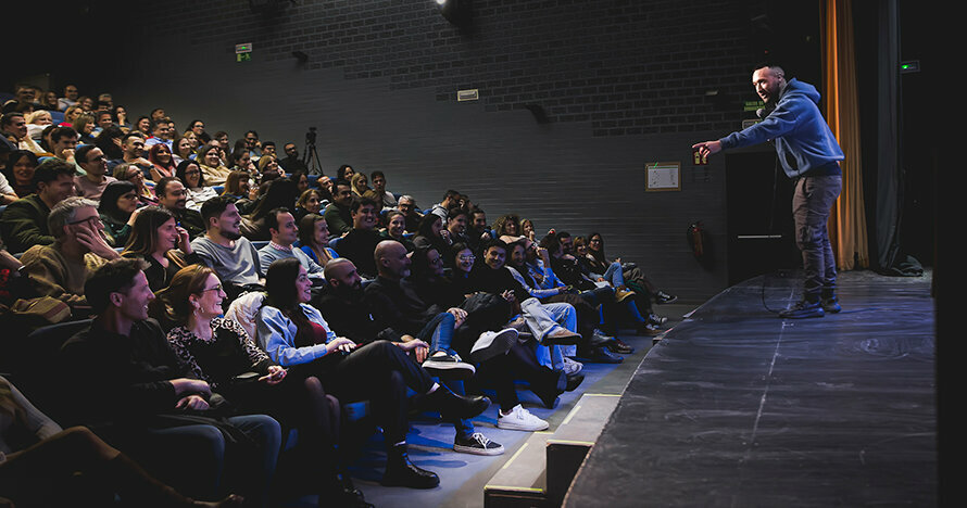 ¿Cómo está un cómico en el segundo antes de salir al escenario? ¿Feliz? ¿Triste? Nada de eso importa en cuanto suba el telón, se enciendan los focos y empiece el espectáculo.