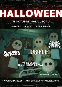 Celebra Halloween en Zaragoza con este cartelazo formado por Shivers, Driade(Madrid) y Dreem Reaper(Valencia) el 31 de Octubre en el Pub Utopía. Recomendamos ir disfrazad@s!