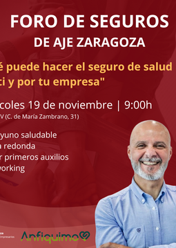 Con Santiago Ponce (Agencia SP) y Ana Solsona (Zaragoza Ocio), que compartirán sus experiencias reales con la implantación del seguro médico en sus empresas y cómo ha impactado en sus equipos