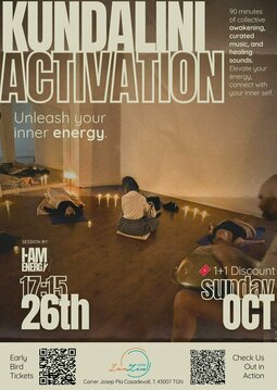 Hey there, beautiful soul! Come hang out with us/I AM ENERGY community for a super chill 90-minute, on-the-mat adventure in our Vibe Tribe Kundalini Activation session, where good vibes and deep connections are waiting just for you!