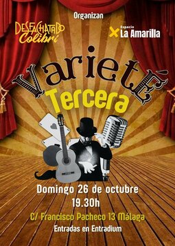 La Varieté Tercera es un espectáculo de variedades que reúne a artistas locales de distintas disciplinas para crear una noche única, irrepetible y llena de sorpresas. Teatro, música, danza, clown, circo… todo cabe en este escenario que se convierte en un escaparate vivo del talento malagueño.