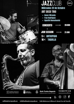 Art Déco Trio nos presenta el sonido de un trío de jazz sin el soporte armónico del piano o la guitarra, generando más libertad y evocando los míticos trios de Sonny Rollins o