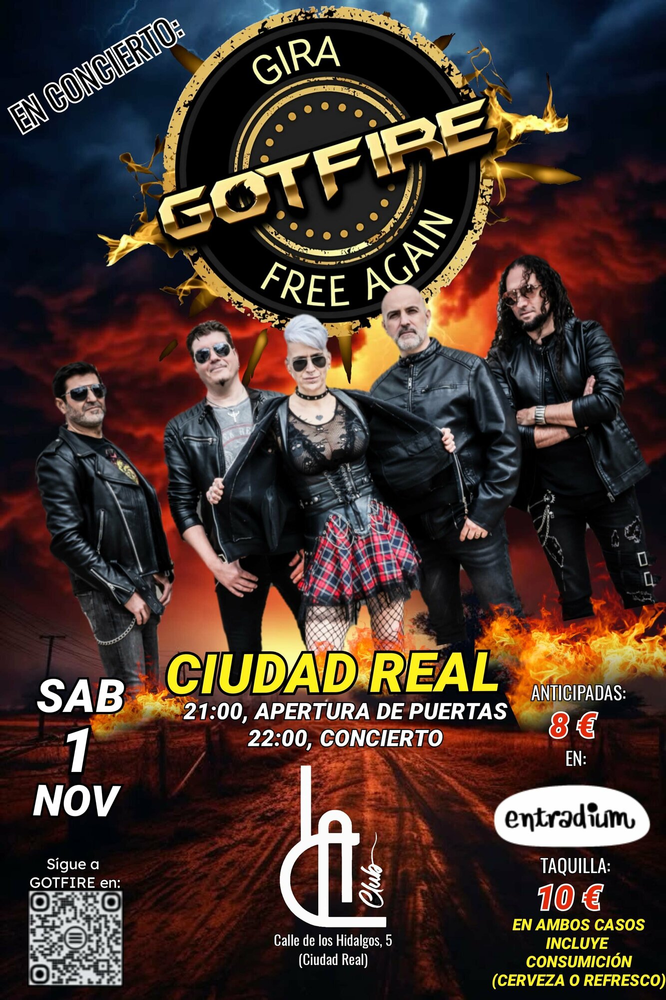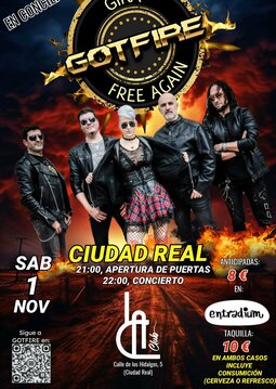 La sala La Club, (La antigua estación), será testigo de una noche de pura energía a manos de la banda Gotfire que viene presentando su disco “Free Again” y estrenando nueva formación, con un Hard Rock potente, melódico y cargado de actitud.