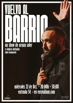En Vuelvo al Barrio, el cómico valenciano Arnau Soler regresa a Benimaclet, el barrio donde creció y del que lleva años huyendo… sin éxito. Entre anécdotas surrealistas, personajes imposibles y recuerdos que huelen a kebab y nostalgia, Arnau disecciona con humor ácido y sarcasmo la vida de barrio: desde los vecinos que se creen hippies hasta los bares donde el camarero te tutea aunque no te conozca.