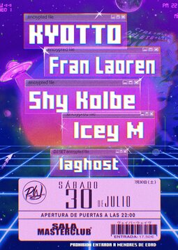 Doble concierto de KYOTTO y FRAN LAOREN dónde también contaremos con el showcase de SHY KOLBE y ICEY M. Tras las actuaciones daremos paso al DJ SET de IAGHOST durante toda la noche.