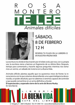 Rosa Montero nació en Madrid. Estudió Periodismo y Psicología. Es autora de las novelas Crónica del desamor (1979), La función Delta (1981), Te trataré como a una reina (1983), Amado amo (1988), Temblor (1990), Bella y oscura (1993), La hija del caníbal (1997, Premio Primavera), El corazón del Tártaro (2001), La loca de la casa (2003, Premio Qué Leer y Premio Grinzane Cavour), Historia del Rey Transparente (2005, Premio Qué Leer), Instrucciones para salvar el mundo (2008), Lágrimas en la lluvia (2011), La ridícula idea de no volver a verte (2013), El peso del corazón (2015), La carne (2016), Los tiempos del odio (2018), La buena suerte (2021), El peligro de estar cuerda (2022) y La desconocida (2023), escrita junto a Olivier Truc; del libro de relatos Amantes y enemigos, de varias obras periodísticas, como Cuentos verdaderos (2024), y de los libros infantiles El nido de los sueños y la serie protagonizada por Bárbara. Es también autora de la serie Bruna Husky, formada por las novelas Lágrimas en la lluvia (2011), El peso del corazón (2015), Los tiempos del odio (2018) y Animales difíciles (2025). En 2017 recibió el Premio Nacional de las Letras. Su trayectoria periodística ha sido reconocida, entre otros, con el Premio Nacional de Periodismo, el Rodríguez Santamaría y el Premio de Periodismo El Mundo. Su obra está traducida a más de veinte idiomas y colabora en el diario El País.