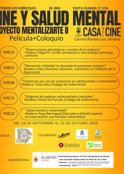 Viel el cineforum Mentalizarte II, cada miércoles organizado por @petalosdealmendro subvencionado por @aytoalm y donde colaboran @enfermeria_alm @smescucha @kinetika @telefonodelaesperanza_almeria y @laoficinalmeria