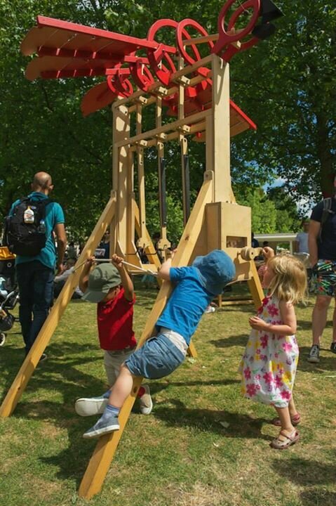 Autómatas de gran formato, rompecabezas, juegos mecánicos que animan pequeños autómatas y un espacio de juego para niños y niñas a partir de 2 años