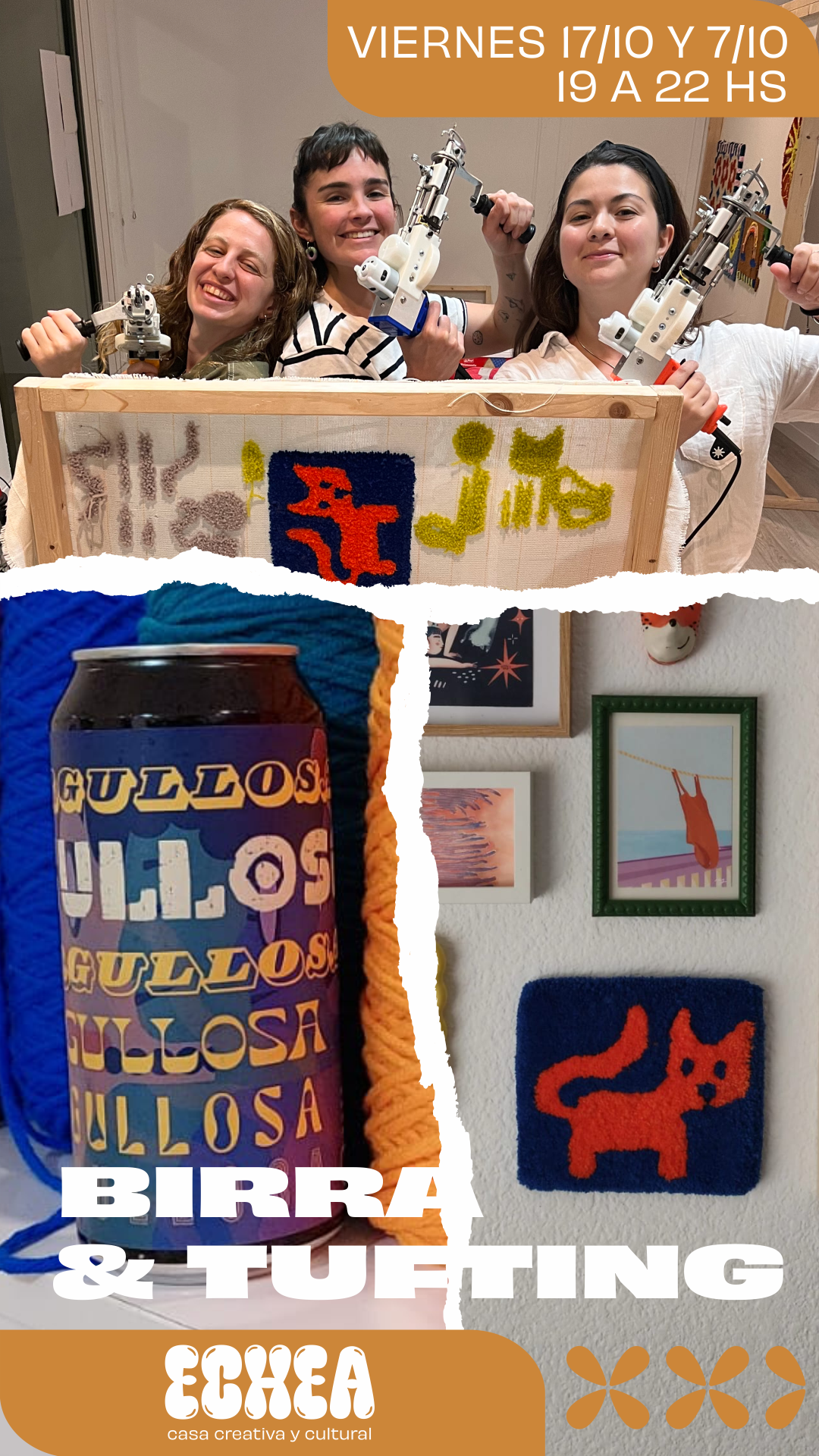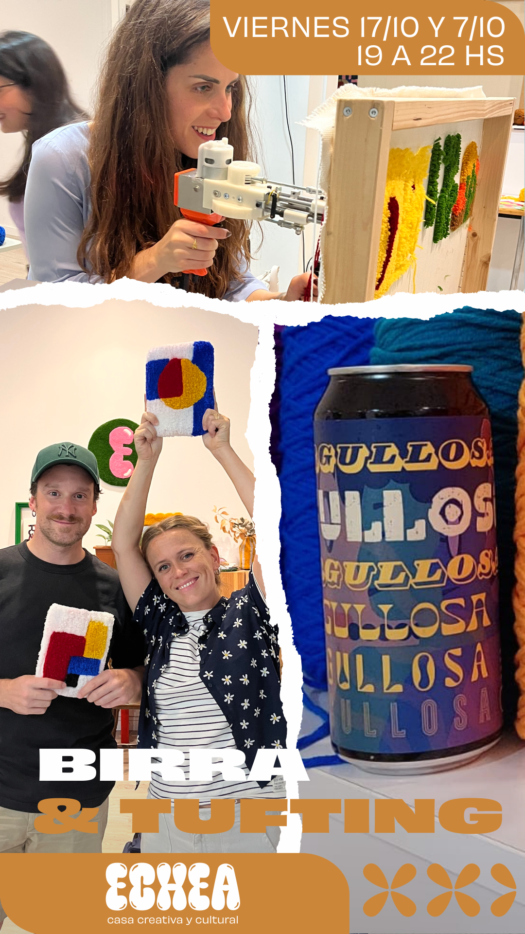 Join us at our creative home ECHEA to make your own tapestry using the tufting technique with Nati from @whynatstudio, while enjoying a New England IPA “Orgullosa” beer crafted by Mariana from @macariabrewmx