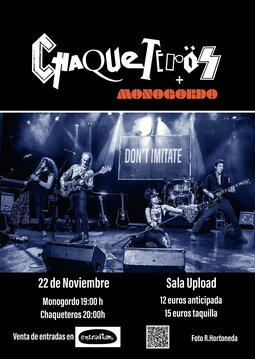 ¡No te pierdas la única fecha de la primera gira nacional de Chaqueteros! "Es una gira porque pillamos la rotonda de plaza España para subir al Upload" (Toni Nervioroto, bajista y chascarrillo mayor del reino)