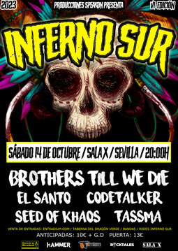 Este año y como cabezas de cartel vienen los Madrileños Brothers Till We Die, que tras uno de sus mejores años y con una reciente gira europea con Deez Nuts, vienen a Sevilla después de varios años de ausencia, para volver a reventar el escenario del Inferno Sur Festival. Una de las mejores bandas de Hardcore del país que lleva ya más de una década liándola por toda Europa. No os los podéis perder.