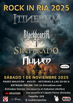 Nueva edición del festival Rock In Ria, este año la caña la pondrán SINPEKADO que presentarán nuevo trabajo y los vitorianos NULLED, por otro lado estarán los bizkainos BLACKHEARTH con su Heavy Metal con toques progresivos y cerrarán el cartel ITINERUM Metal gótico sinfónico con vocalista femenina.