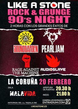 ¡2 HORAS DE CONCIERTO CON LOS GRANDES ÉXITOS DE PEARL JAM, AUDIOSLAVE, SOUNDGARDEN Y RAGE AGAINST THE MACHINE con el show LIKE A STONE ROCK&GRUNGE 90's NIGHT!