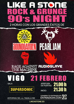 ¡2 HORAS DE CONCIERTO CON LOS GRANDES ÉXITOS DE PEARL JAM, AUDIOSLAVE, SOUNDGARDEN Y RAGE AGAINST THE MACHINE con el show LIKE A STONE ROCK&GRUNGE 90's NIGHT!