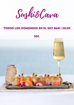 Vistas al mar, atardecer, sushi, cava y DJ.