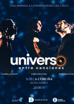 El reconocido físico y divulgador científico José Edelstein (premio FECyT en 2012 y Prismas de divulgación científica en 2019 y 2023), junto a las músicas argentinas Lore Edelstein (guitarra y percusión) y Daniela De Rito (voz y teclados), integran “Universo entre Canciones”, una hermosa e inquieta mirada a la inmensidad del cielo.